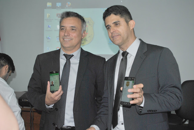 O Diretor do Instituto de Identificação da PCDF, Simão Pedro e o Chefe da Seção de Avanço Tecnológico da PCDF, Rogério Alves, na coletiva de imprensa de apresentação do e-identidade